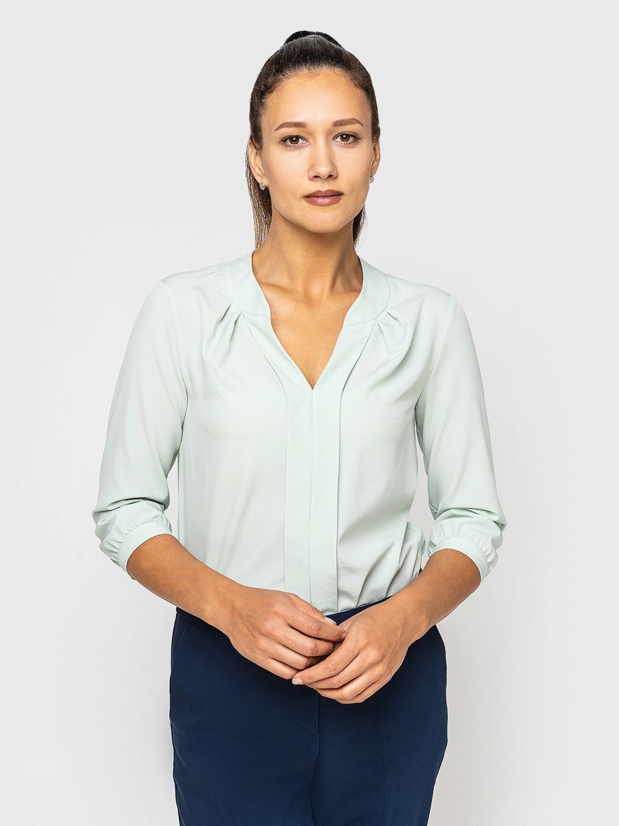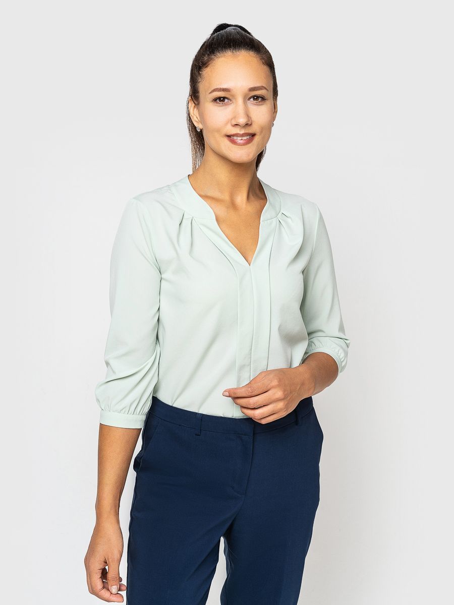 Изделие с удобными рукавами ¾ и небольшими разрезами в боковых швах.