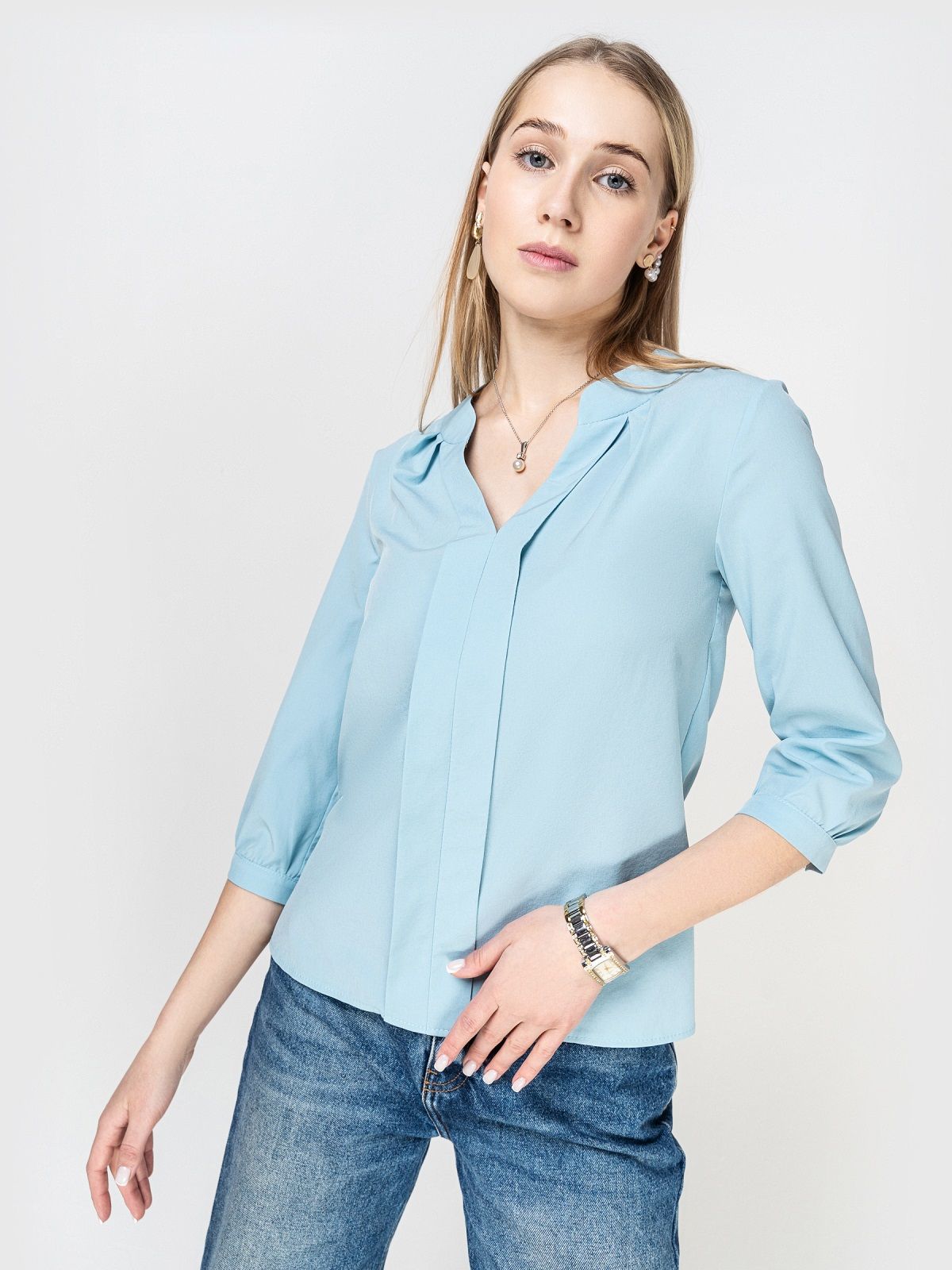 Изделие с удобными рукавами ¾ и небольшими разрезами в боковых швах.