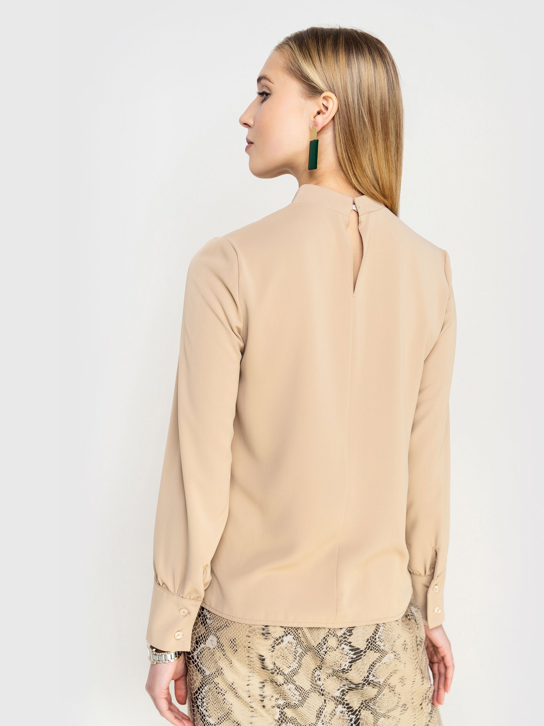 Блузка застегивается на пуговицу по спинке. Модель отлично дополнит повседневный образ,