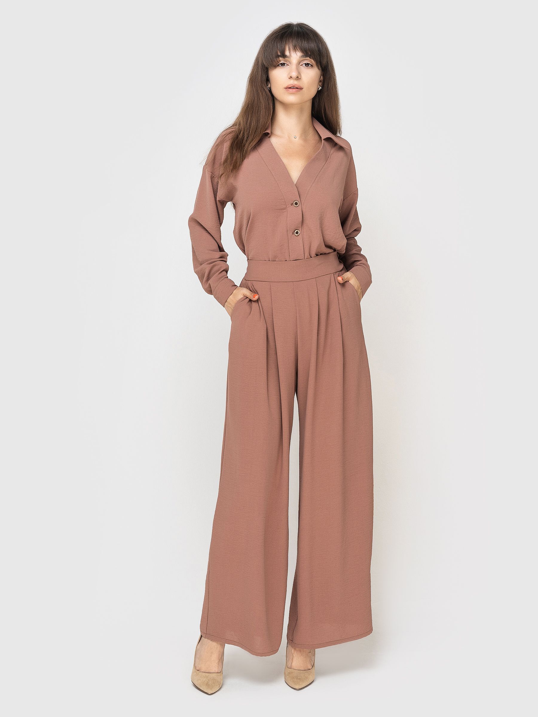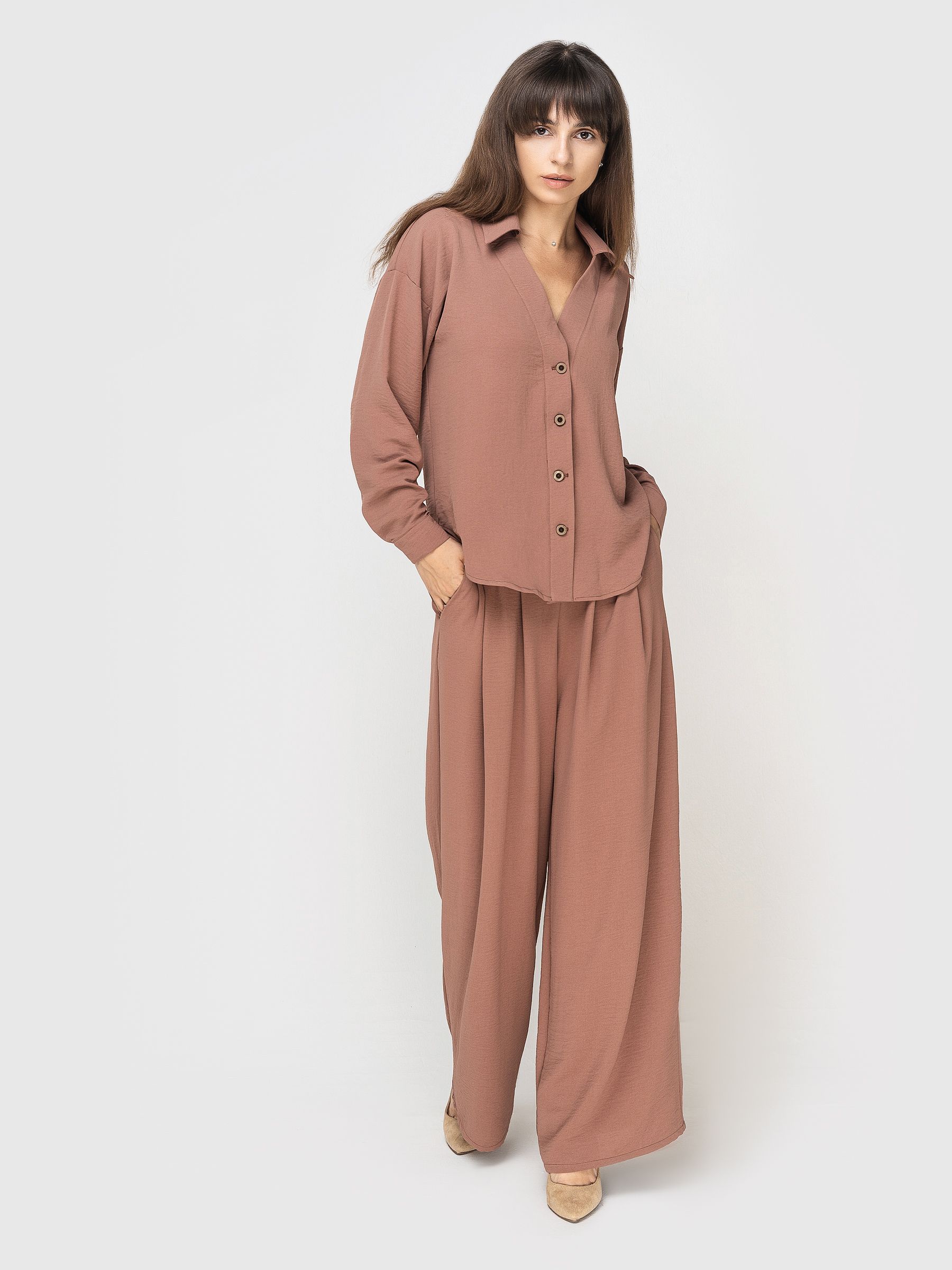 Длина брюк по внешнему шву 104 см. по внутреннему 76см. Ширина брючины 32. Длина рубашки 61 см., рукав от горловины 76см.