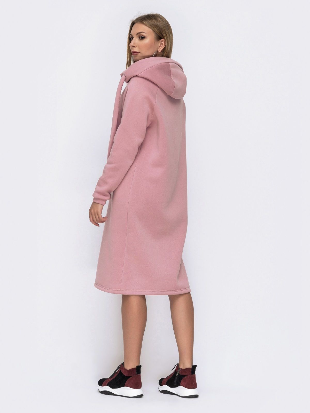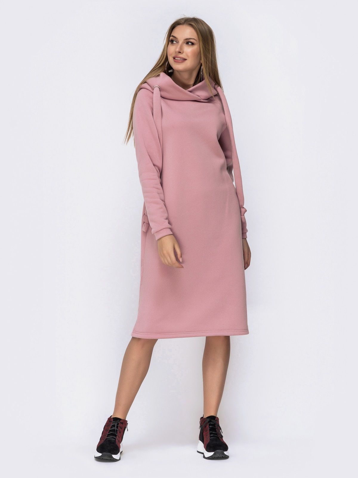 Комфортное платье свободного кроя в стиле sport-casual из трёхнитки. Модель с карманами и капюшоном на завязках. Подойдет обладательницам типа фигуры "прямоугольник" и "груша".