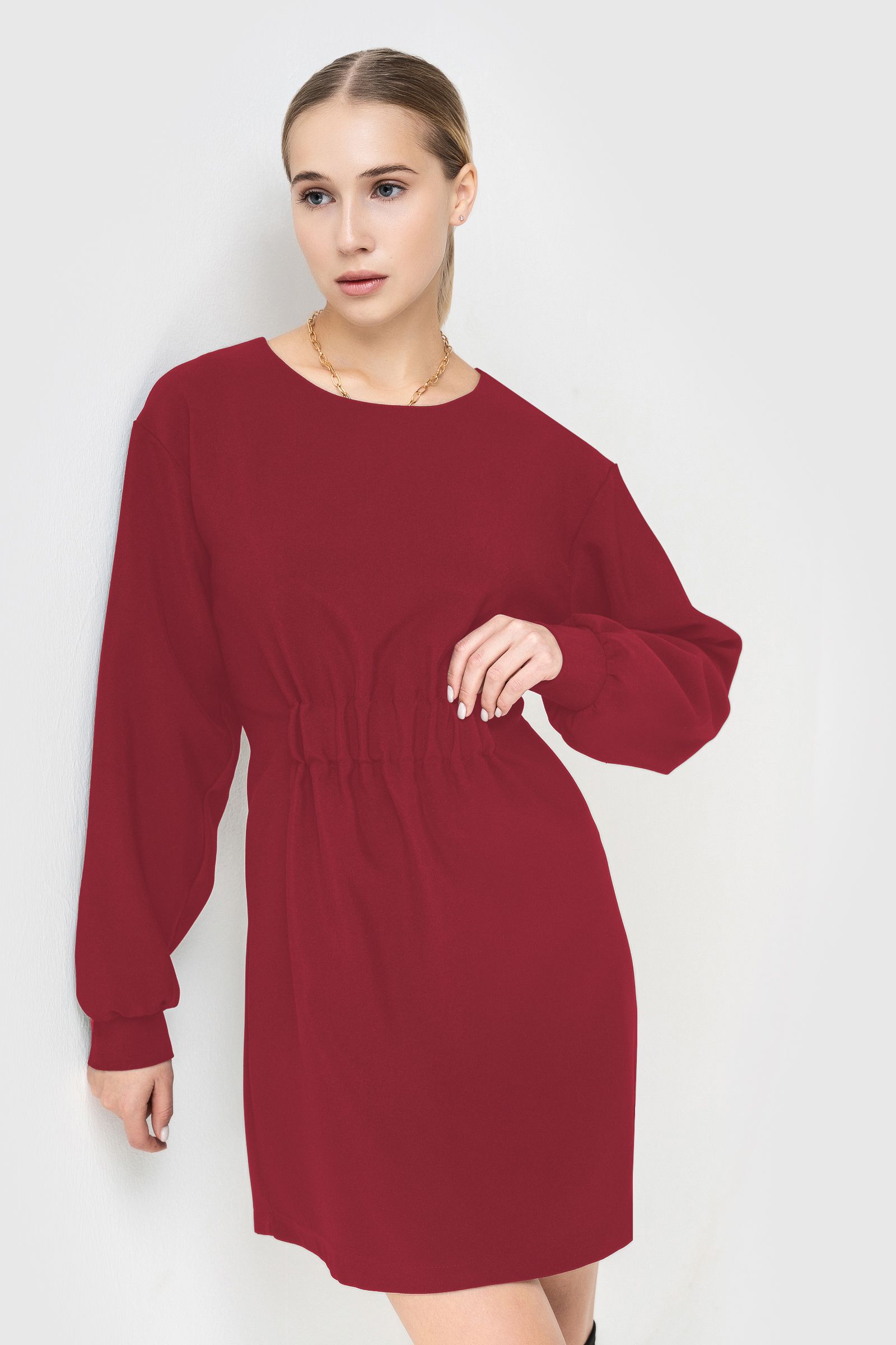 Резинка на талии обеспечивает идеальную посадку, что очень удобно и привлекательно. Она позволяет подчеркнуть талию и создать эффектно приталенный силуэт. Благодаря защипам на талии, платье выглядит очень аккуратно и структурированно. Эта деталь придает платью особый шарм и делает его более интересным. Круглогодичное красное платье – это еще одно преимущество данной модели. Вы можете носить его в любое время года, комбинируя с различными аксессуарами и обувью. Великолепно смотрится на корпоративе или праздничном мероприятии, а также в обычный день, когда желаете добавить нотку элегантности в ваш гардероб. Надев это платье, вы всегда будете выглядеть подтянуто и стильно. По своему силуэту это платье подходит даже для беременных женщин. Оно отлично подчеркнет вашу фигуру и придаст уверенности в себе. Подходит для любого повода и благодаря своей мягкости и удобству, позволит вам чувствовать себя комфортно весь день. Платье из вискозы также будет великолепно смотреться в сочетании с легкими кардиганами или пиджаками в холодное время года. Все вышеперечисленные факторы делают платье с резинкой на талии и длиной мини универсальным и востребованным в женском гардеробе. Оно подходит для различных ситуаций, офисных мероприятий, праздничных вечеринок и повседневных прогулок. Это платье, которое Вы будете носить с удовольствием и в котором будете выглядеть стильно и элегантно. Длина изделия 86см. Длина рукава 58 см.