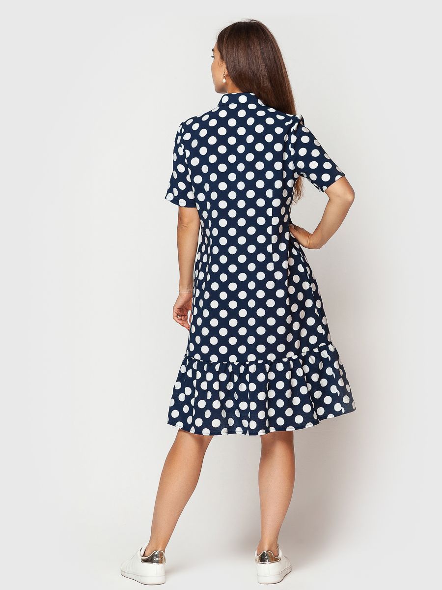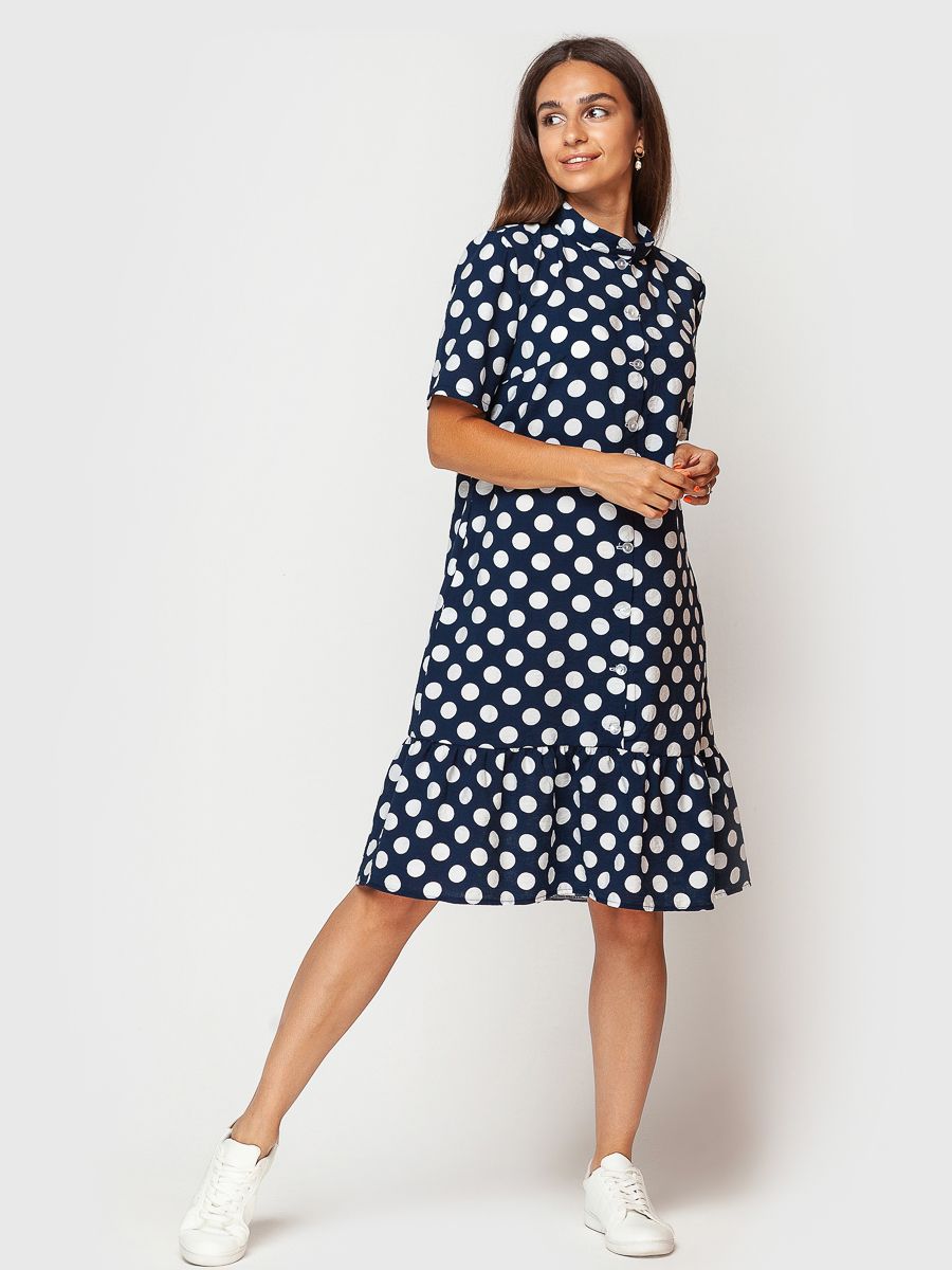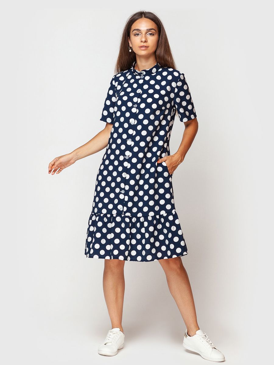 Приятная к телу натуральная ткань с модным принтом в крупный горох подарит ощущение комфорта и удовольствия.