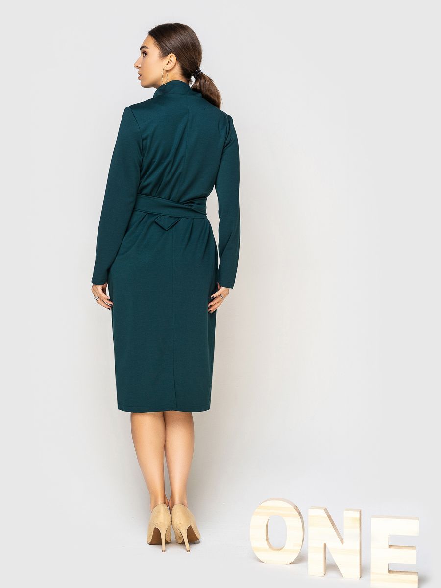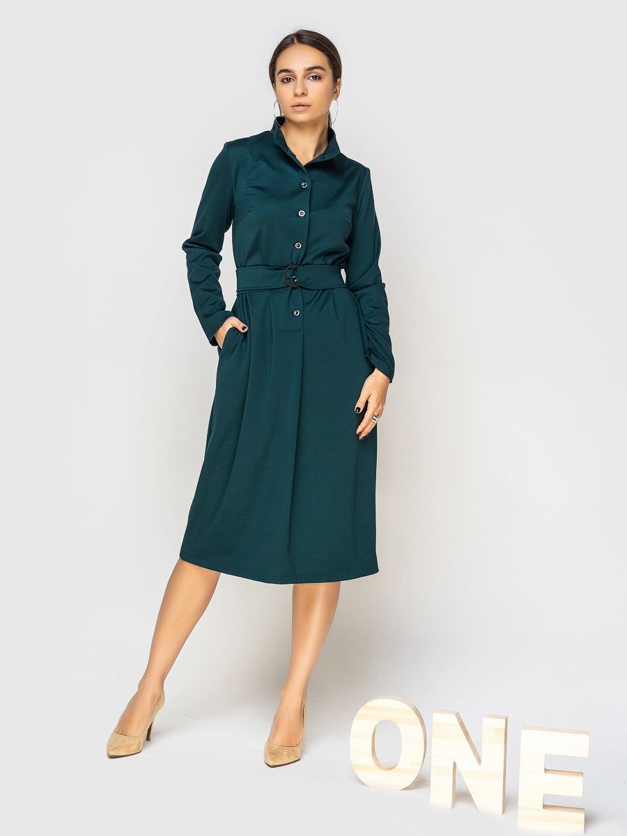 предусмотрены карманы. Фигуру подчёркивает пояс из основного материала с застёжкой.