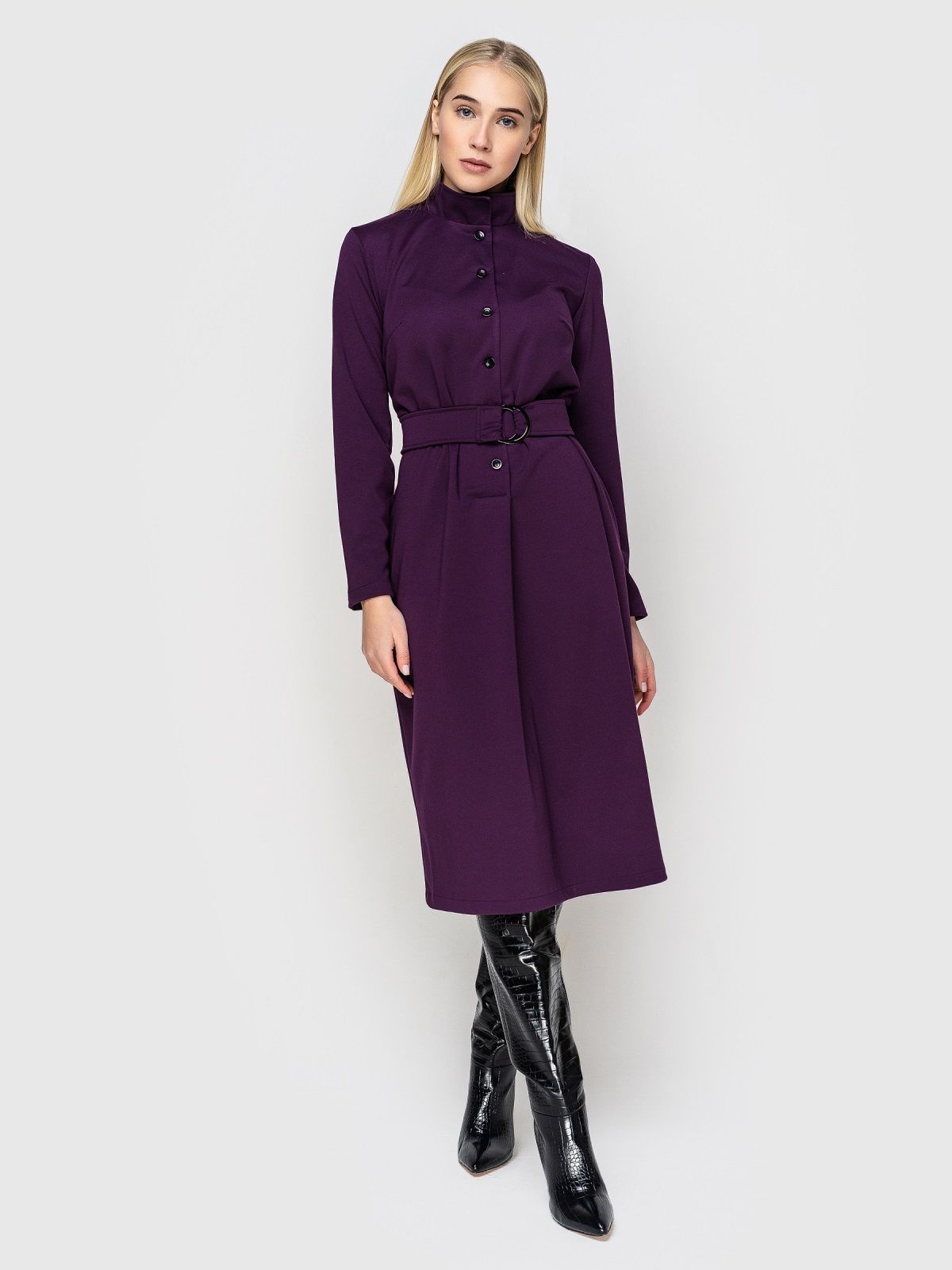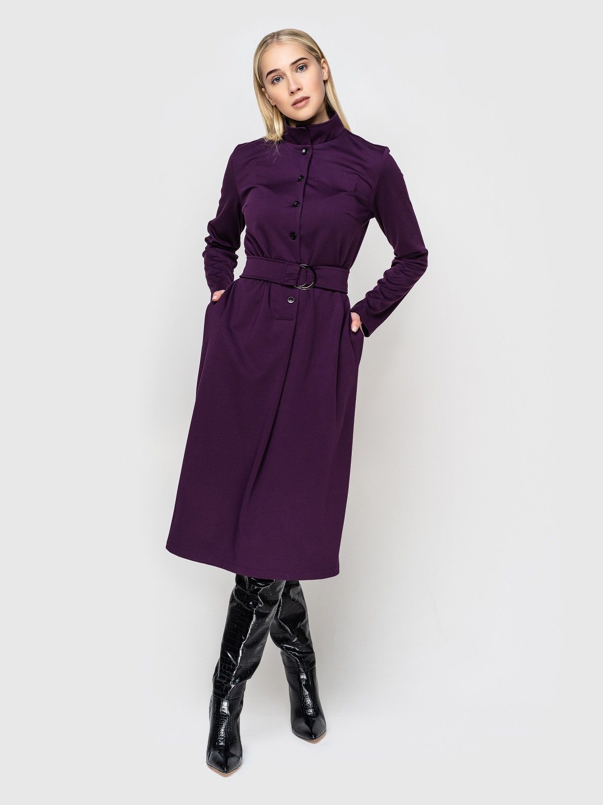 предусмотрены карманы. Фигуру подчёркивает пояс из основного материала с застёжкой.