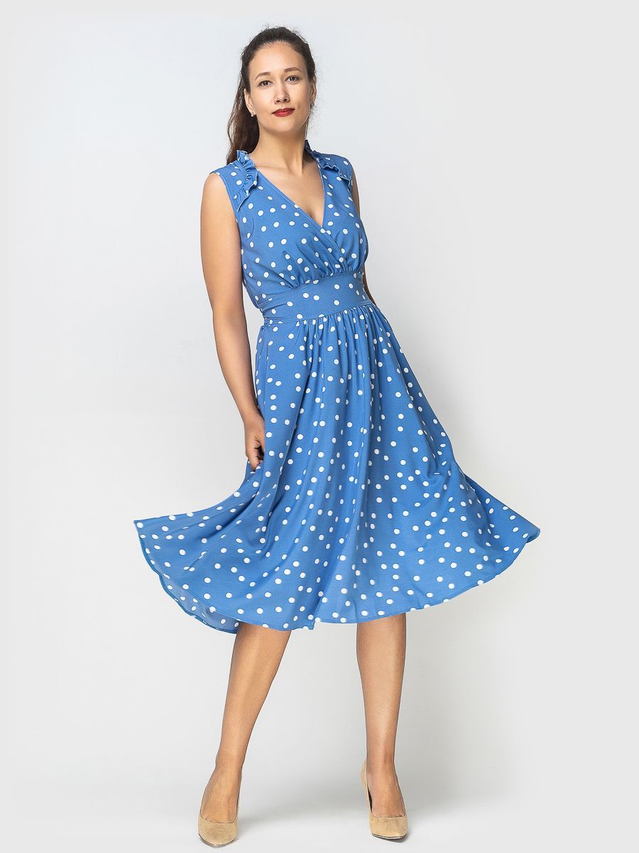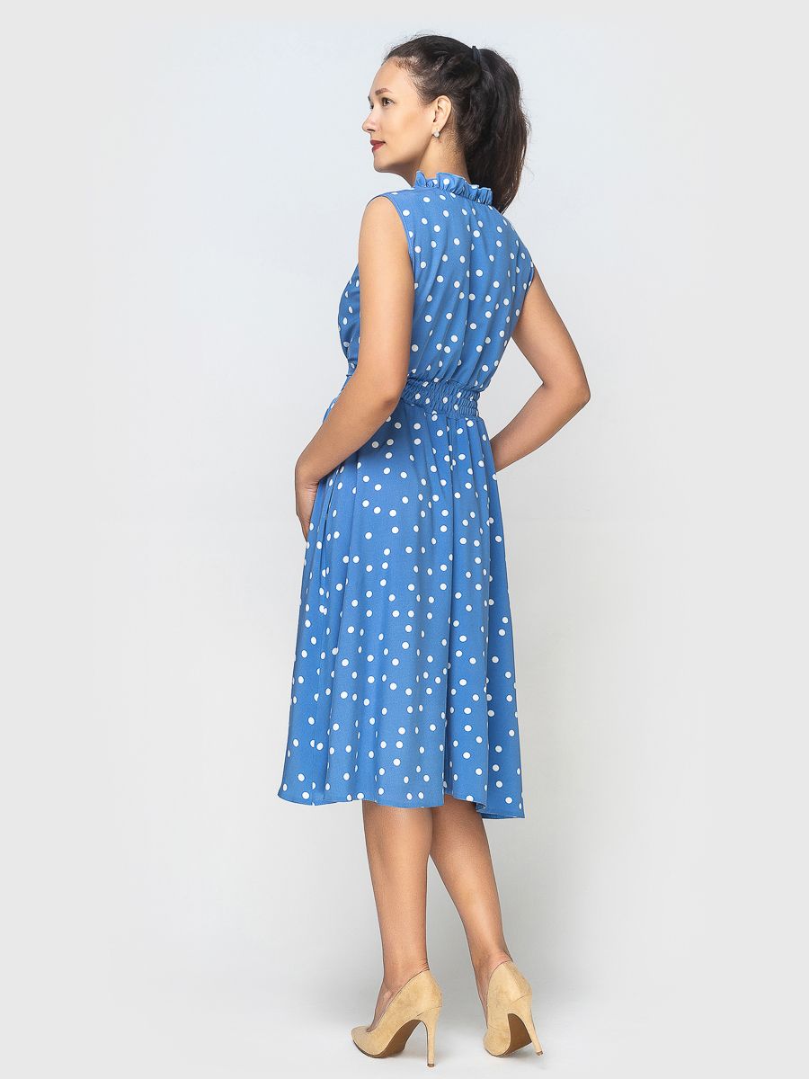 Изделие без рукавов, с втачным поясом, сзади присобрано на резинке.