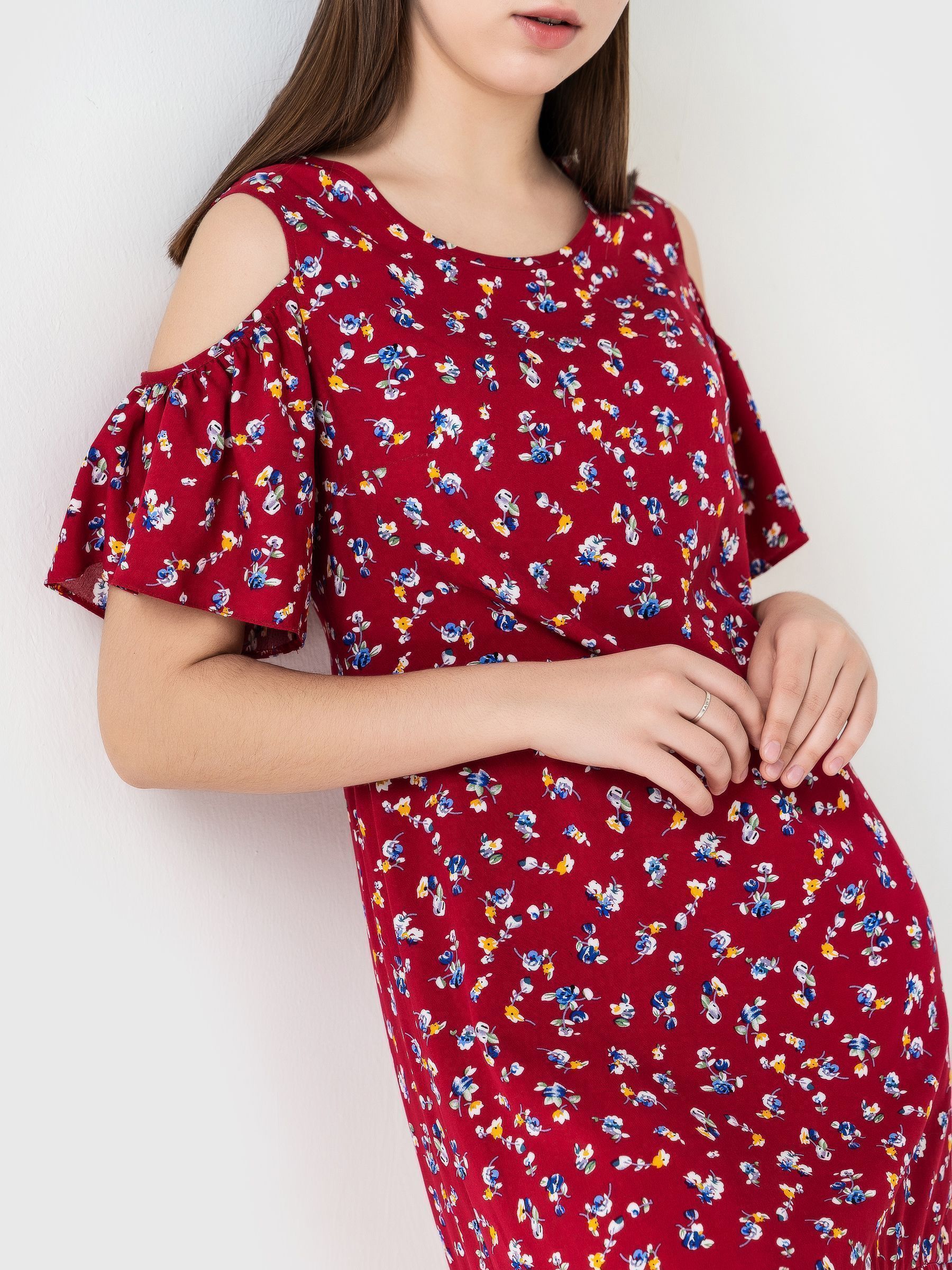 Рукава декорированы оборкой, а по низу платье дополняет широкий волан.