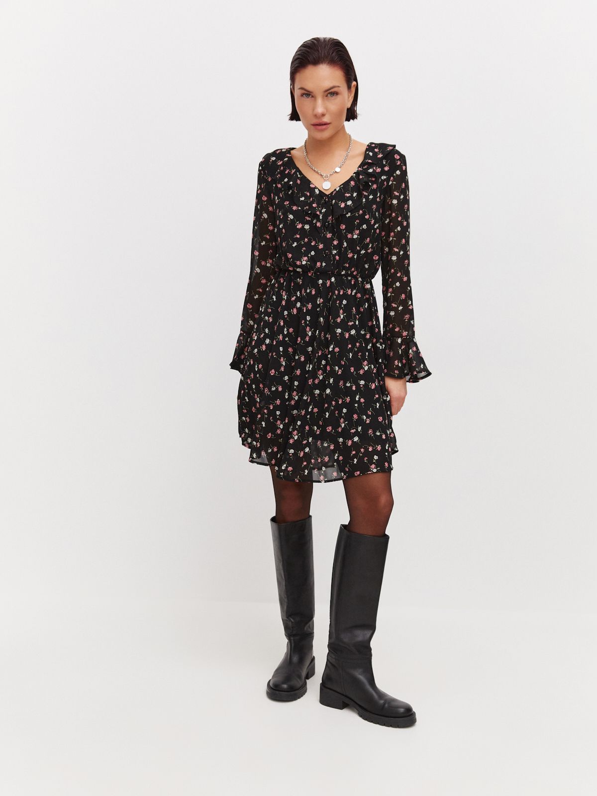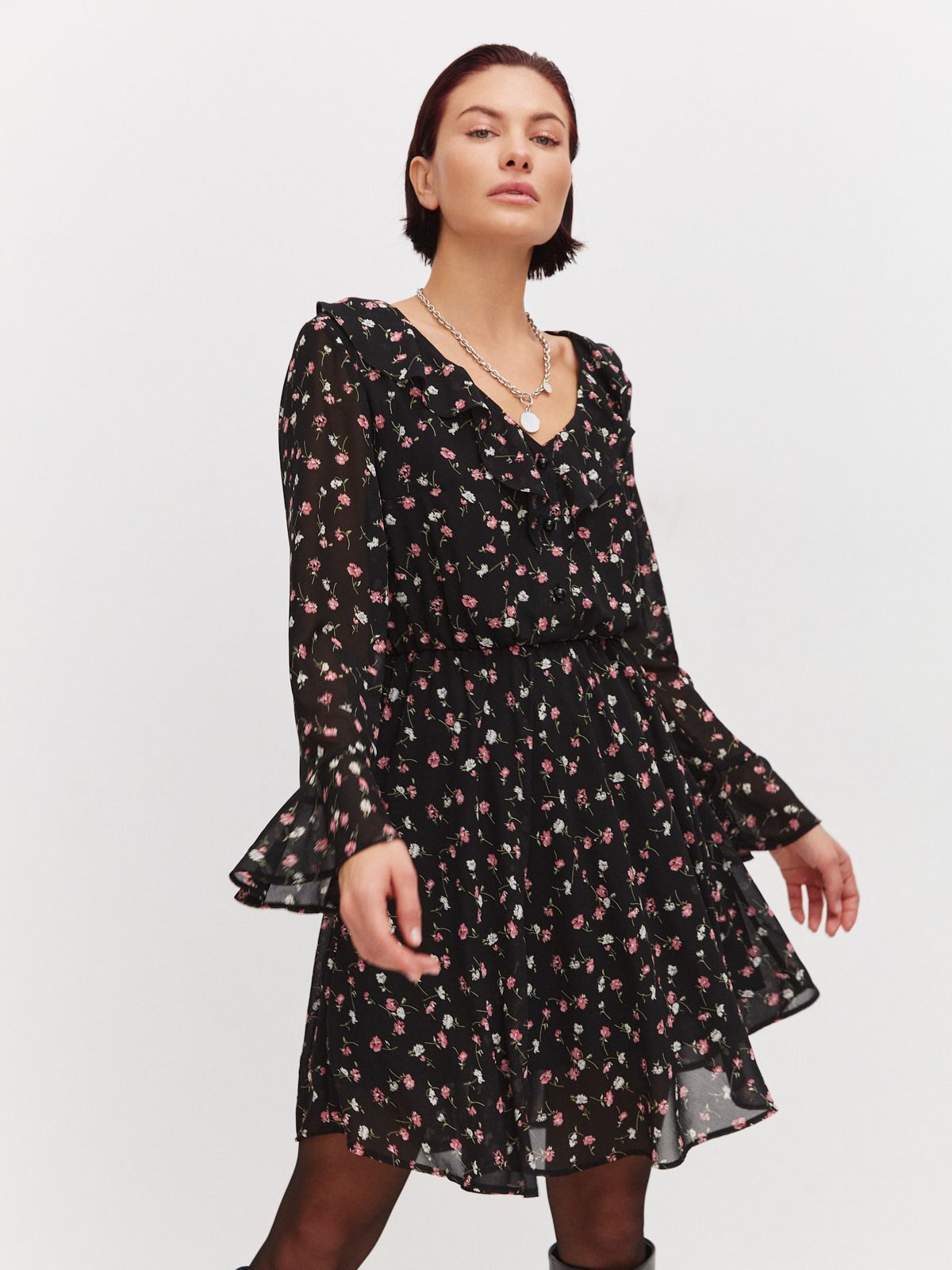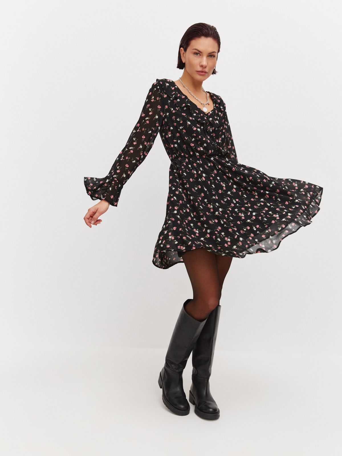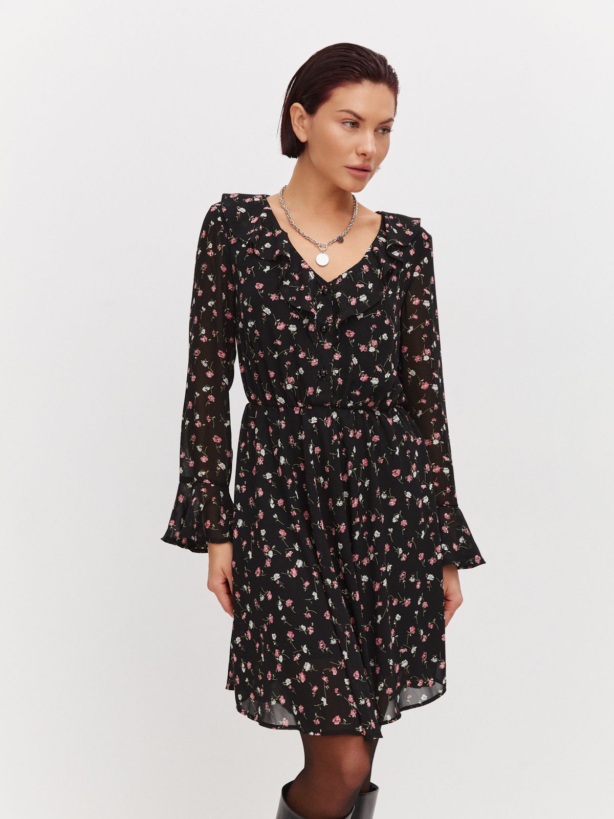 Платье женское нарядное шифоновое мини с оборками в цветочек - это то, что нужно каждой женщине, которая хочет выглядеть красиво и уверенно в любой ситуации.