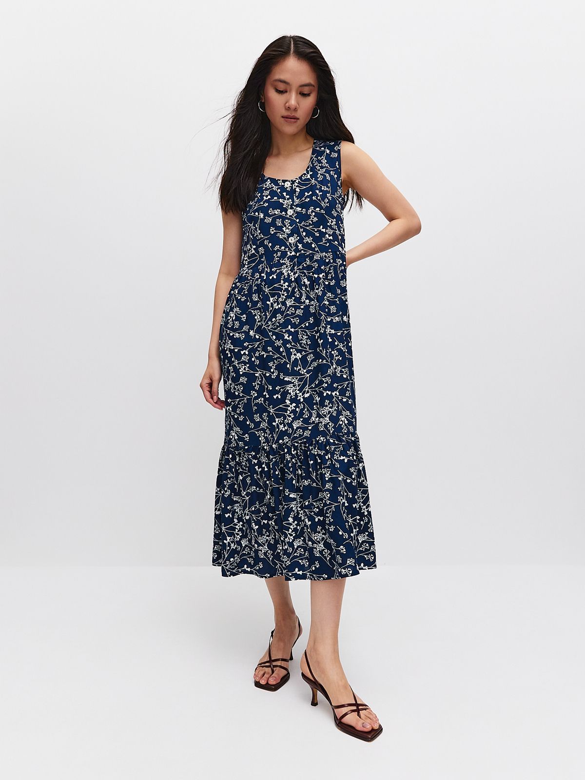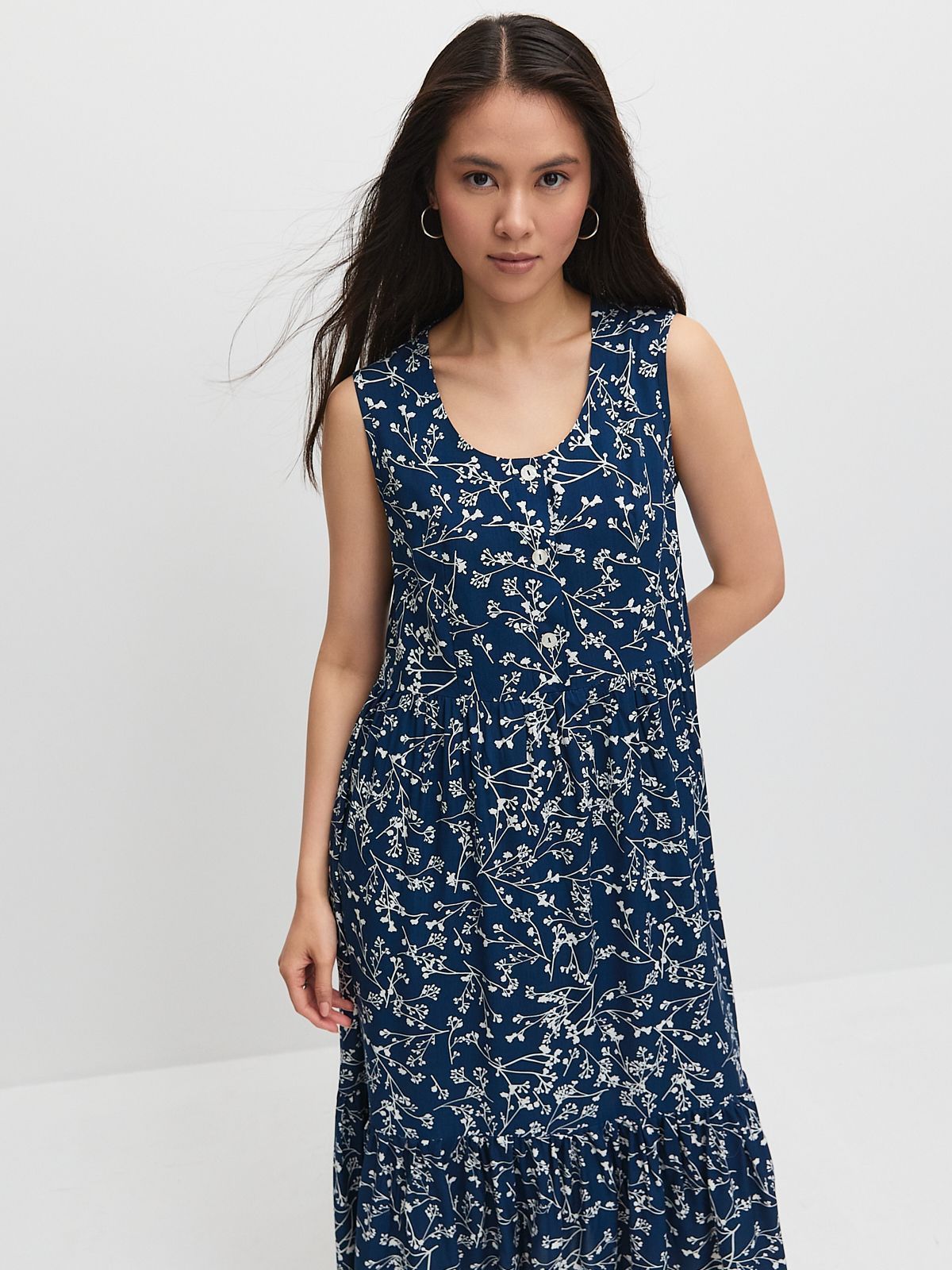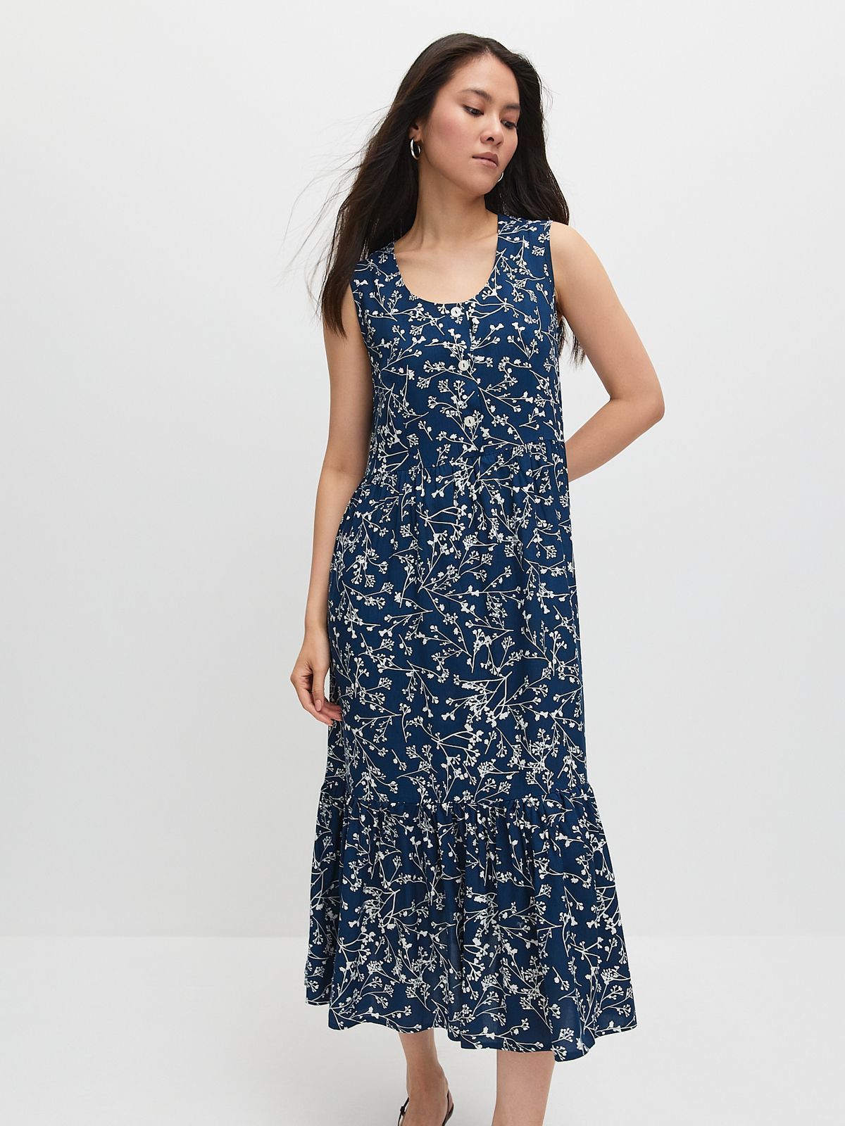 Легкий и приятный на ощупь материал подойдет для тёплых летних дней, даря ощущение свежести и комфорта. Платье без рукавов позволяет насладиться полной свободой рук, идеально подходя для активного образа жизни или просто расслабленного отдыха на природе. Повседневное использование этого платья делает его универсальной вещью в гардеробе любой женщины. Оно прекрасно сочетается с различными аксессуарами, что обеспечит вам разнообразные образы по вашему вкусу.