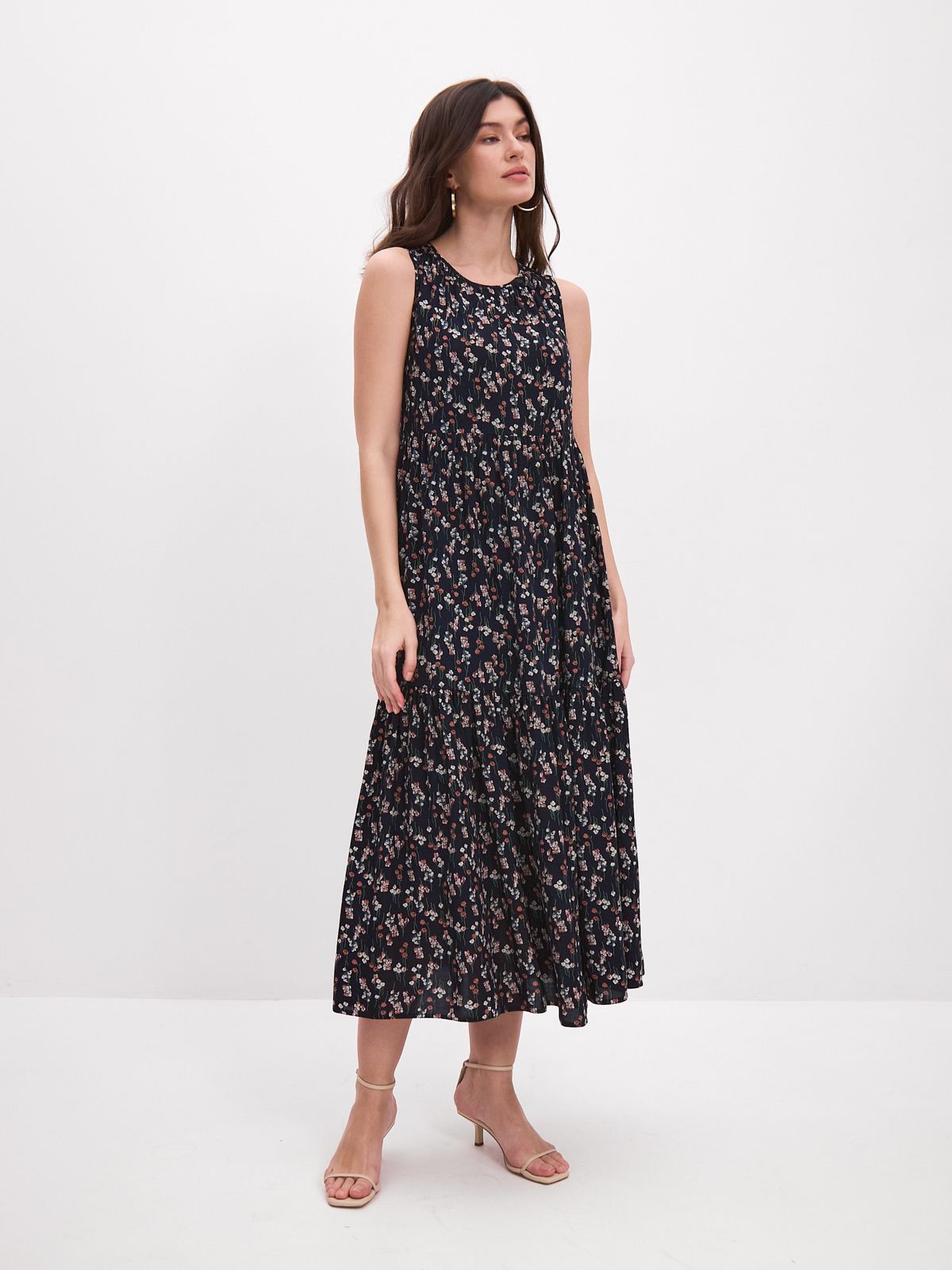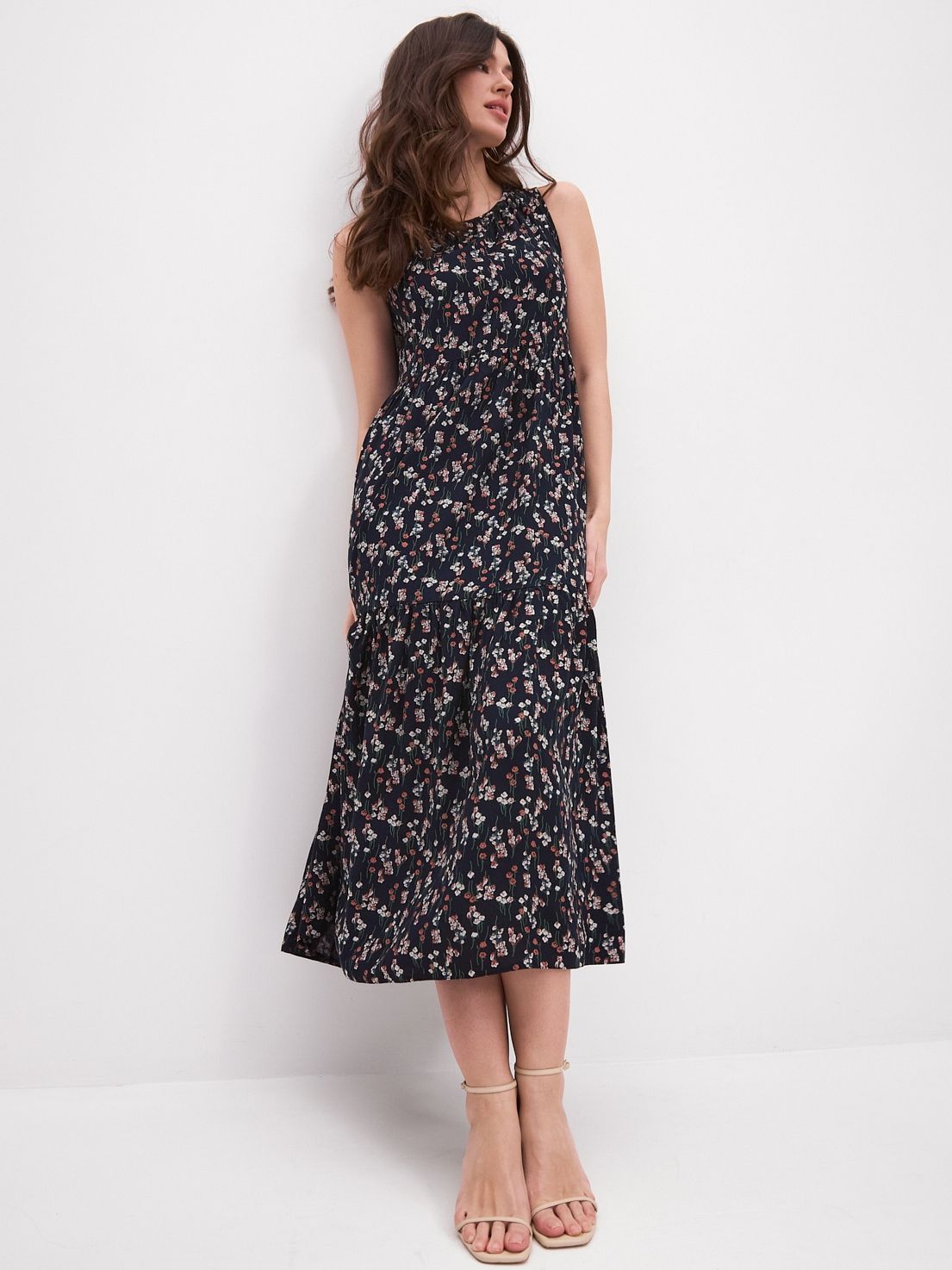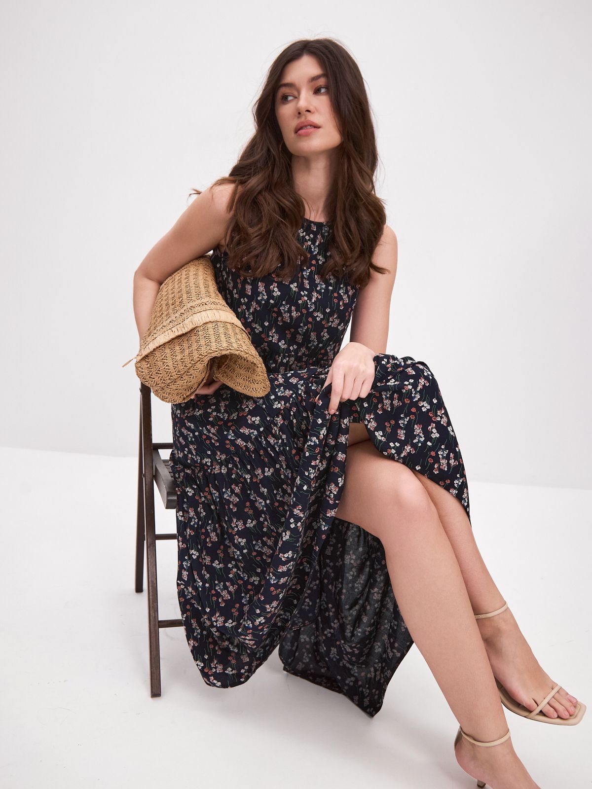 Платье бохо украшено красивым принтом, который поднимает настроение и добавляет изюминку вашему образу. Застежка-пуговичка на спинке.