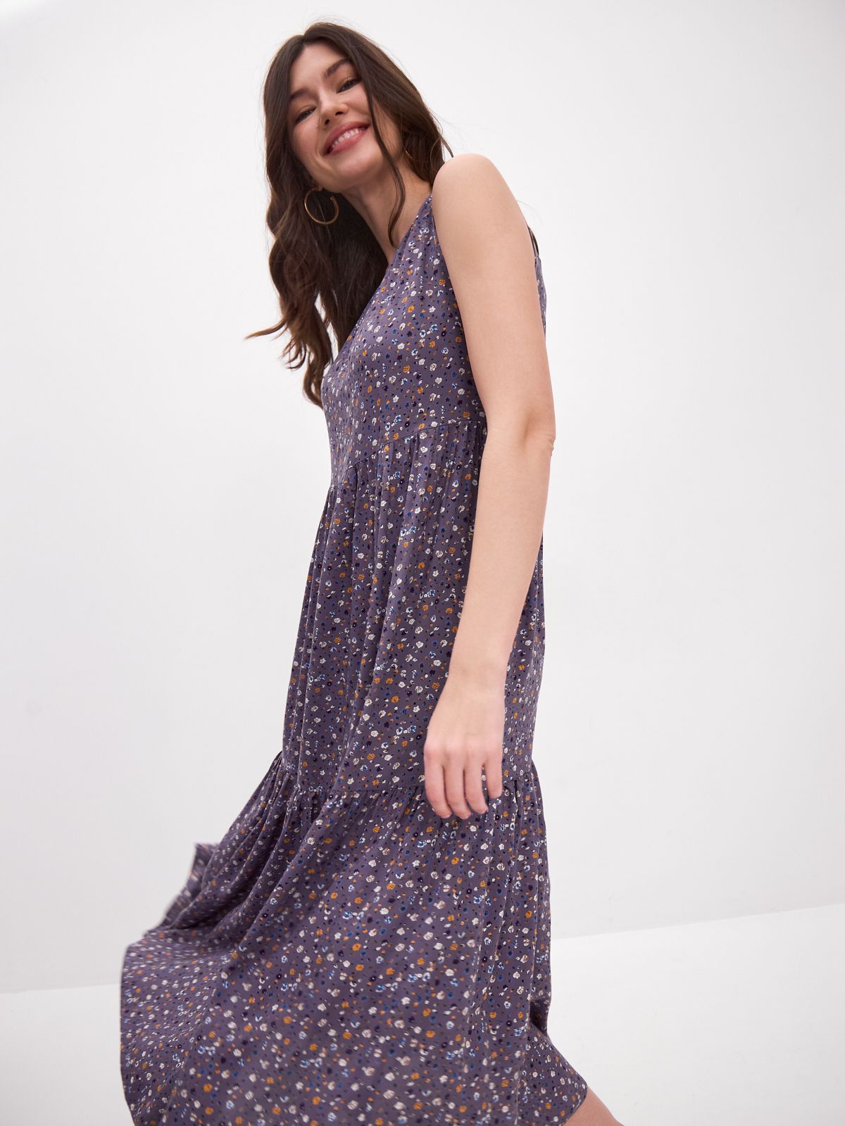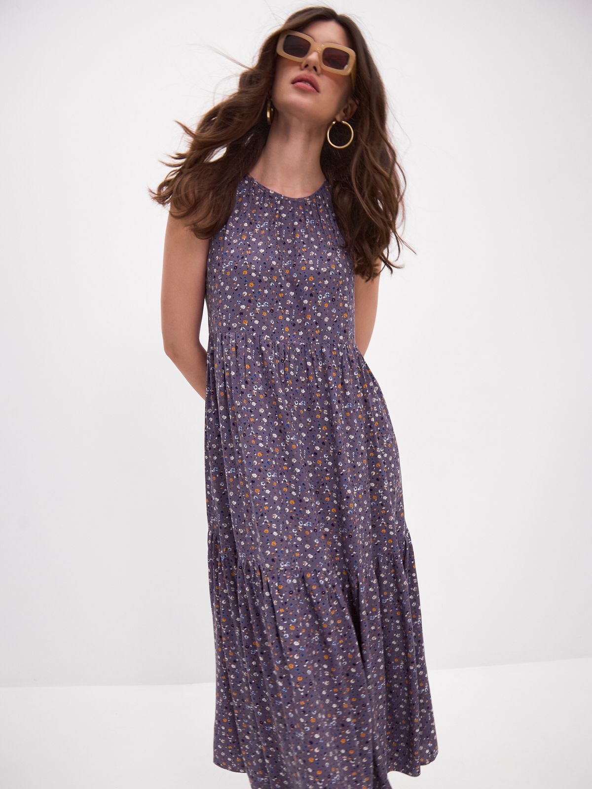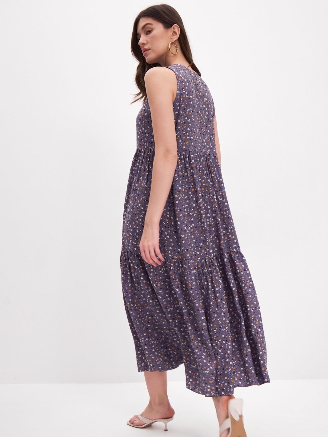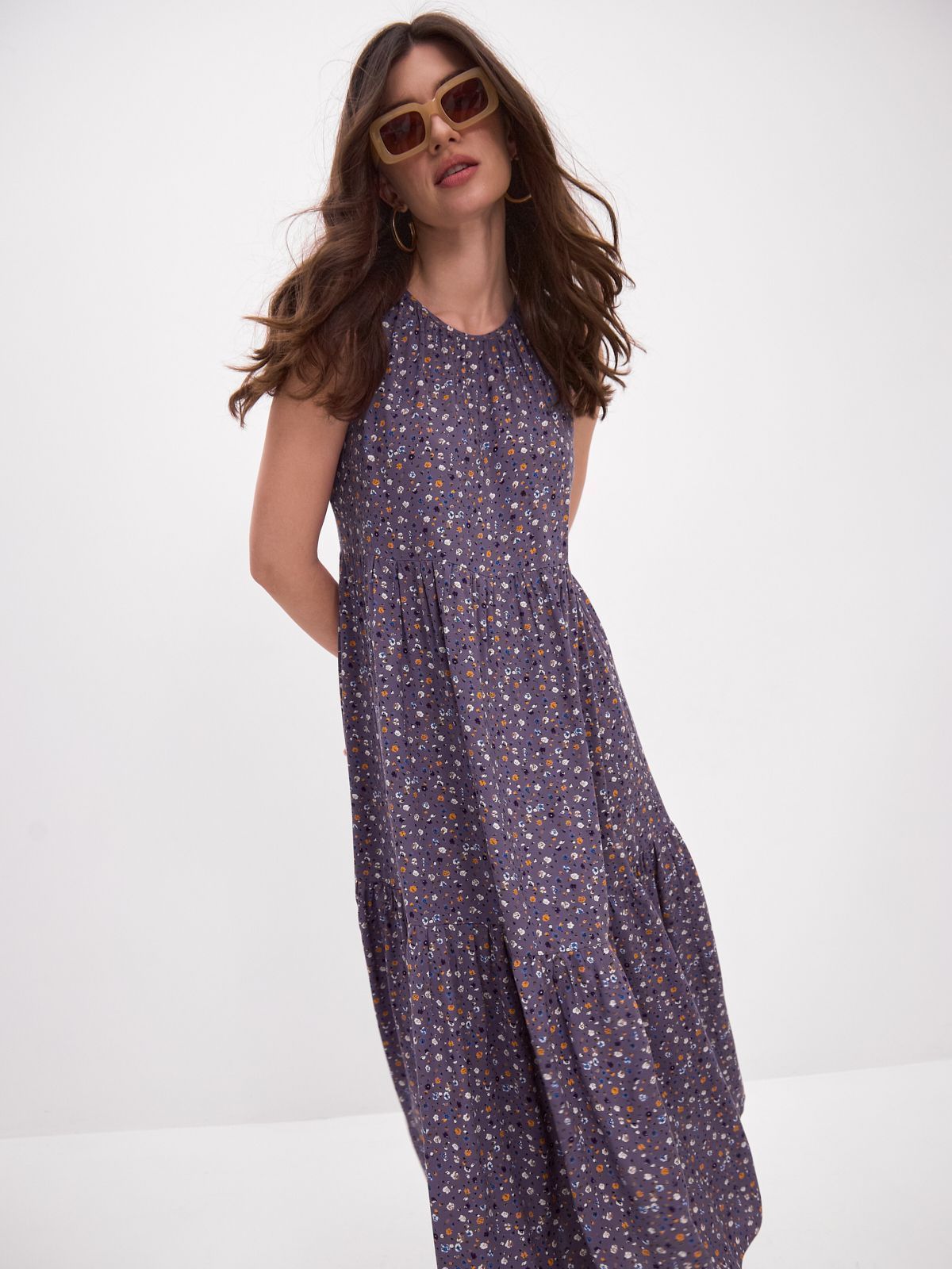 Платье бохо украшено красивым принтом, который поднимает настроение и добавляет изюминку вашему образу. Застежка-пуговичка на спинке.