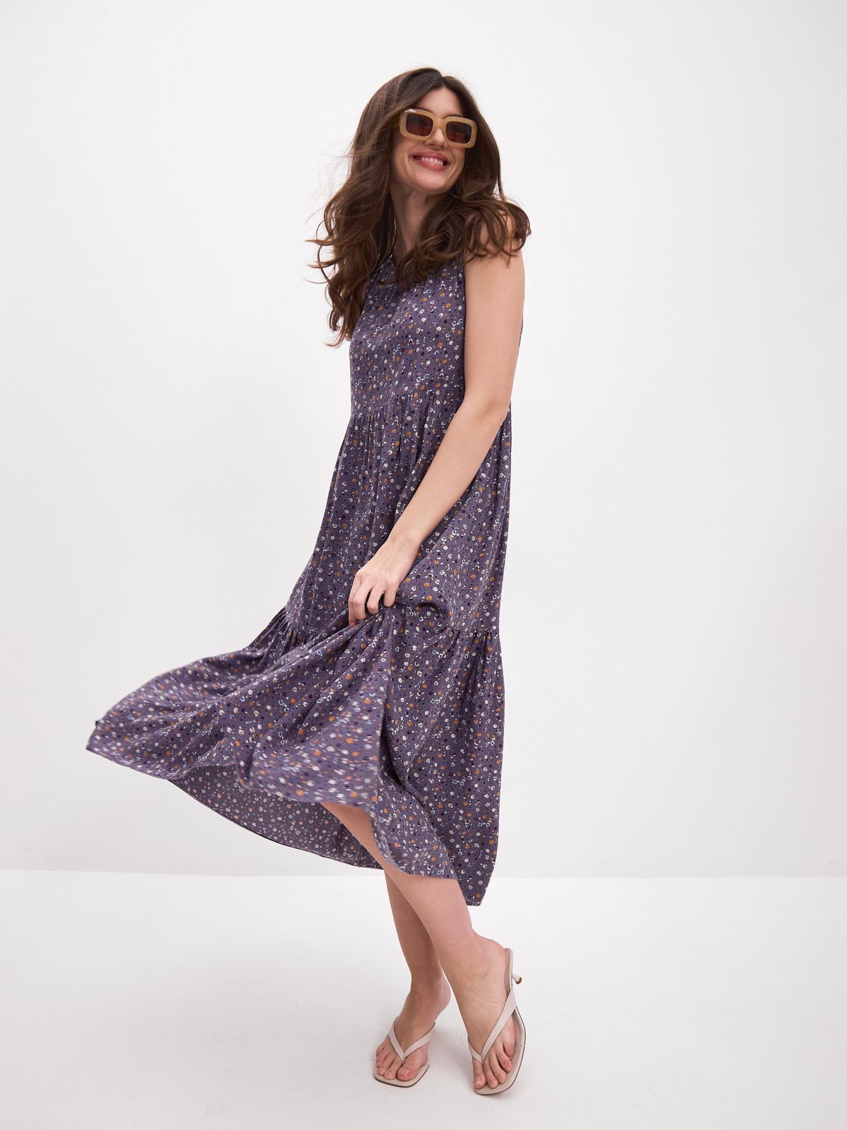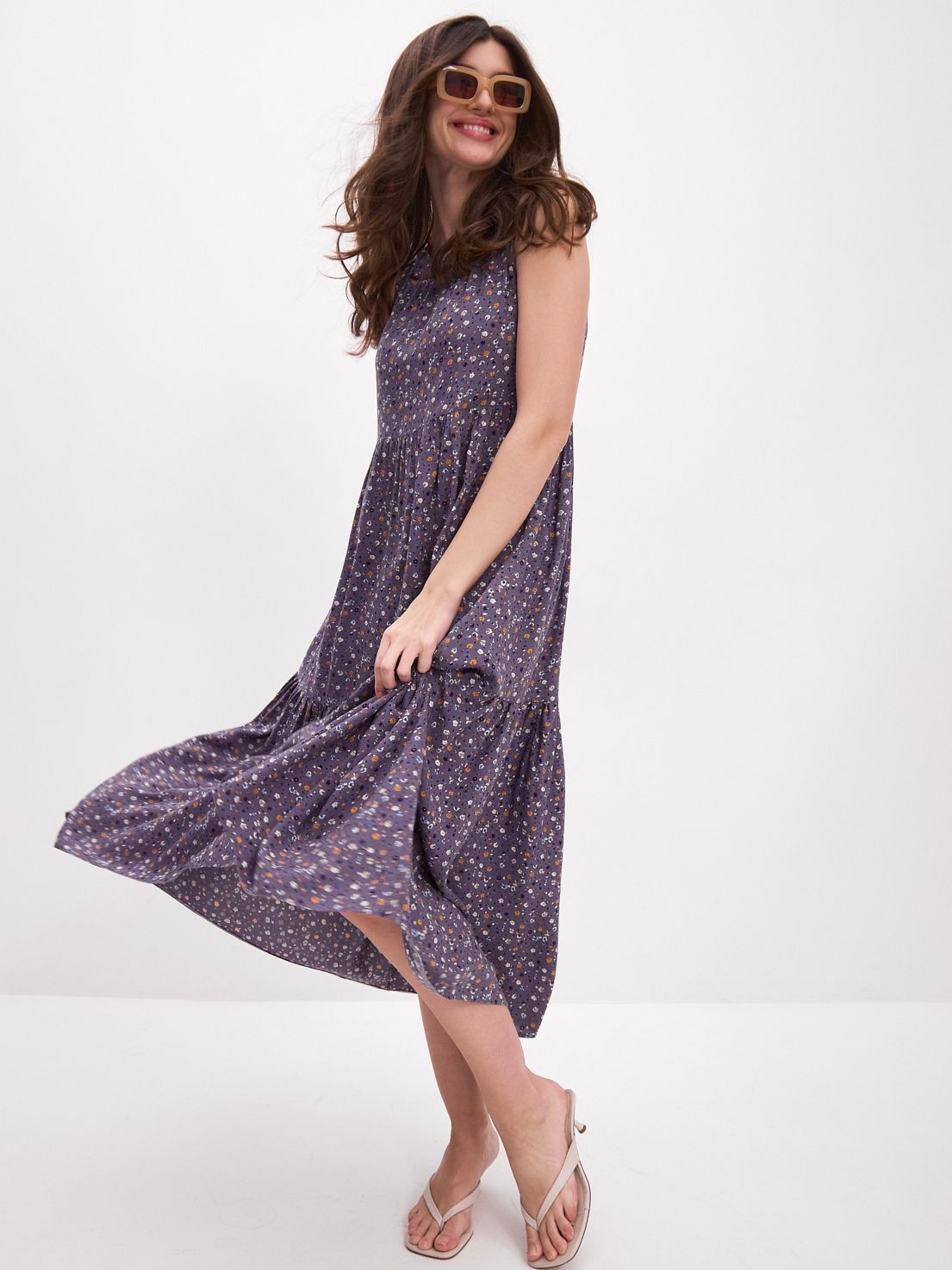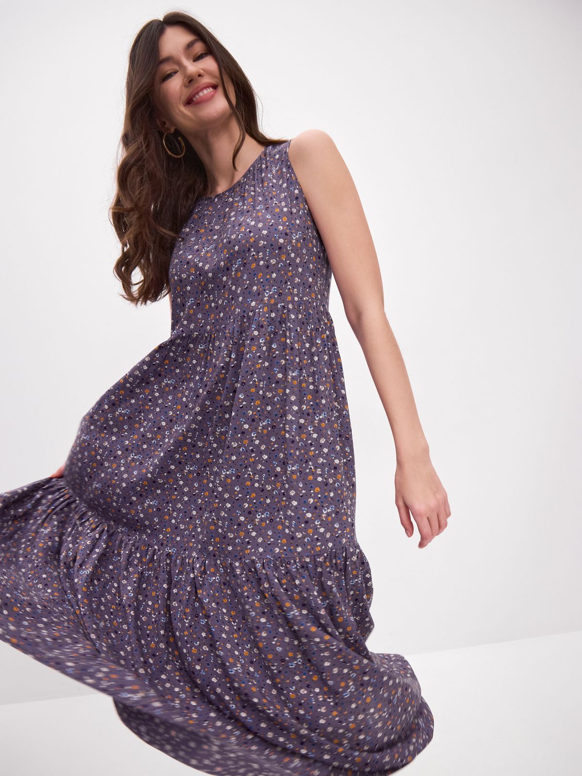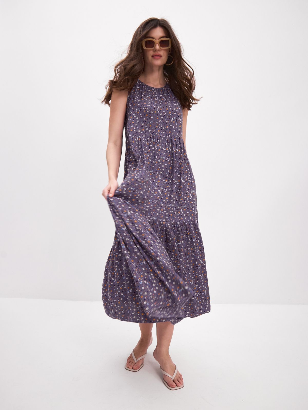 Платье бохо украшено красивым принтом, который поднимает настроение и добавляет изюминку вашему образу. Застежка-пуговичка на спинке.