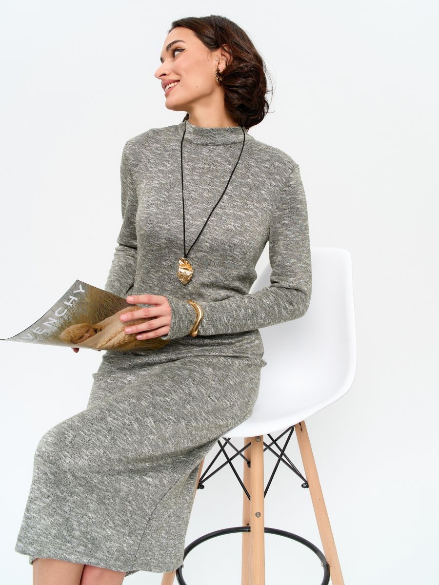 Это приталенное платье со стойкой воротником подчеркнёт вашу женственность и изящество. Благодаря своему крою, оно прекрасно садится по фигуре, создавая эффектный силуэт. Длина миди делает его идеальным выбором для любого случая, а также позволяет сочетать платье с различными видами обуви — от элегантных туфель на каблуке до удобных кроссовок.