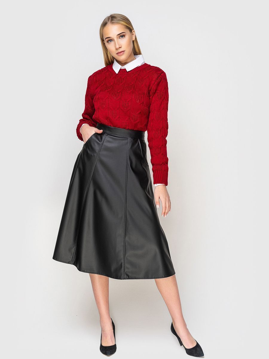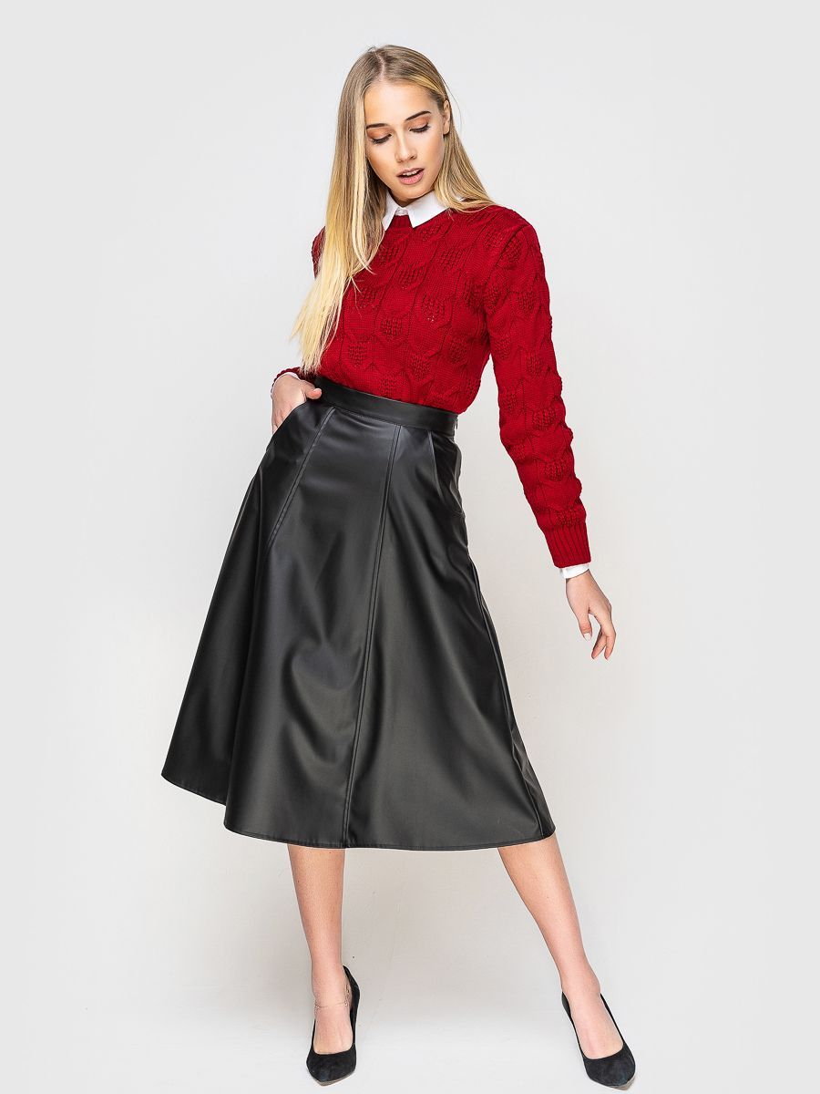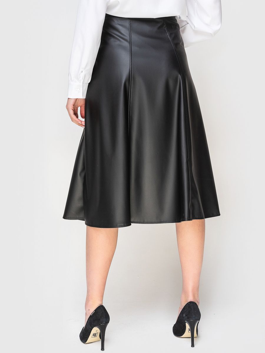 Модель из эко-кожи застёгивается на потайную молнию сбоку. Спереди по бокам расположены карманы с отрезным бочком. Юбка длины миди станет отличной находкой вашего повседневного всесезонного образа. Современный и женственный элемент гардероба, стильно сочетающийся с любой одеждой, совместим как с классической обувью, так и с ботинками, создавая экстравагантный образ. Юбка-клеш прекрасно смотрится на любой фигуре, выгодно подчеркивает талию и стройнит. Подходит для офисного образа, для прогулки и похода в ресторан.